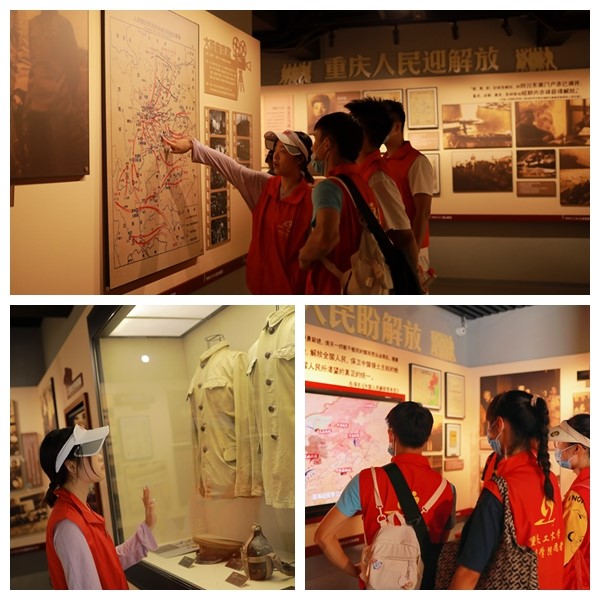 解放重庆在哪里打响了第一枪?发生过哪些惊心动魄的战斗?黎明前的黑夜共产党员又做出了怎样的努力?实践团在解放重庆历史陈列馆里一一找寻到了答案。通过实地参观,实践团成员在一幅幅历史图片、一件件珍贵文物、一段段深情文字中,回到了那段激荡的革命岁月,深切感受到党的光辉历程和伟大的建党精神。