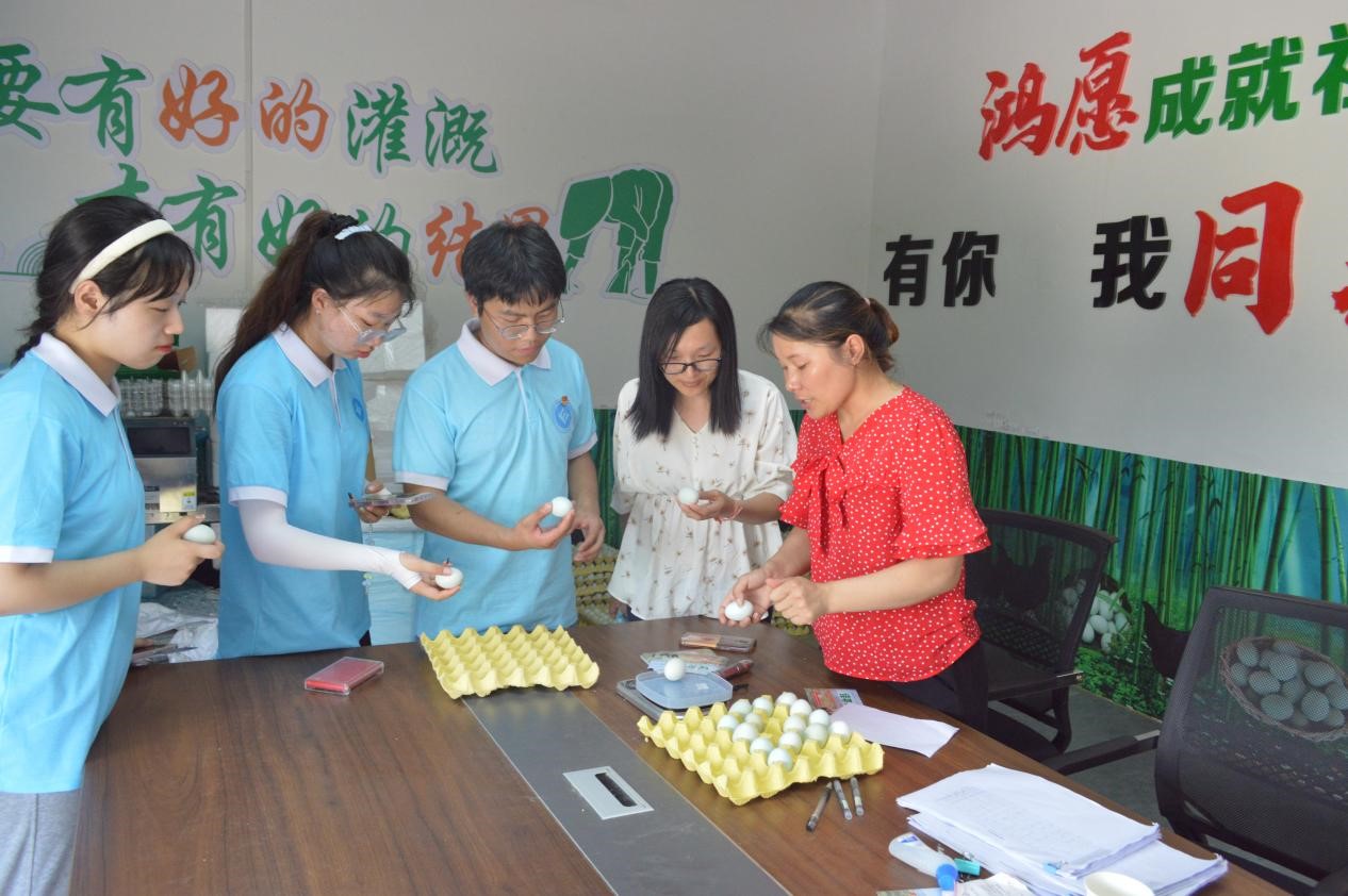 为充分发挥当地独特的资源优势,培育富民产业拓展增收渠道,普顺生态农业专业合作社依托现有资源决定大力发展土鸡生态养殖,助推乡村振兴战略走深走实。7月16日下午,在校友刘书言的带领下,实践团来到普顺生态农业专业合作社,深入了解长柏村土鸡养殖产业发展情况。合作社相关负责人详细为实践团讲解了鸡苗领养、鸡蛋回收、销售等环节,土鸡养殖模式主要是采取合作社加基地加农户的新模式,每批鸡苗公益性的免费发放给自愿领养的村民,根据村民养鸡场地规模、喂养能力发放20至100只鸡苗进行散养,以保证产品质量,然后合作社再从农户手中回收土鸡、土鸡蛋。她还为实践团展示了回收的鸡蛋质量,虽然看起来不大,但每个鸡蛋重量都是在一两以上,鸡蛋的密度很大。除了土鸡和土鸡蛋,合作社还发展了其他相关产品,如土鸡蛋面。