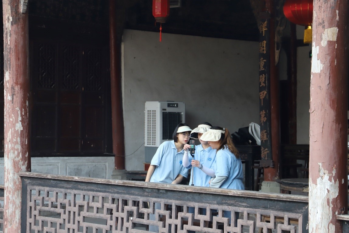 当天上午10:00,直播在微信平台“青春向党,助兴龙乡”账号开启,成员们采取随走随播的形式,用镜头展示古镇街道、建筑风韵、安居文化。