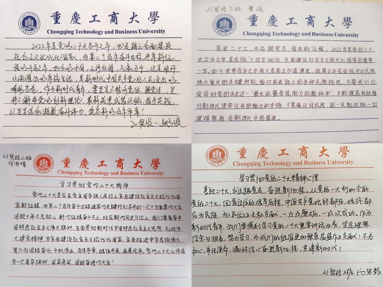 经济学院各团支部采取多样化形式展开了学习交流。同学们就“两个确立”“四个意识”“四个自信”“两个维护”等分享了自己的理解。同学们谈到,新时代的十年来党和国家事业取得历史性成就、发生历史性变革,推动我国迈上全面建设社会主义现代化国家新征程。新时代十年的伟大变革,是以习近平总书记为核心的党中央坚强领导的结果,是全党全军全国各族人民团结奋斗、顽强拼搏的结果。千秋伟业,百年序章;继往开来,再展风华。大家纷纷表示,作为新时代青年,必将坚定不移听党话、跟党走,时刻有胸怀历史伟业、心怀民族复兴的担当,将自己的人生目标与祖国、时代的命运联系起来,树立远大理想,培养良好品德,自信自强、守正创新,踔厉奋发、勇毅前行,以青春之我、奋斗之我,为民族复兴铺路架桥,为祖国建设添砖加瓦!