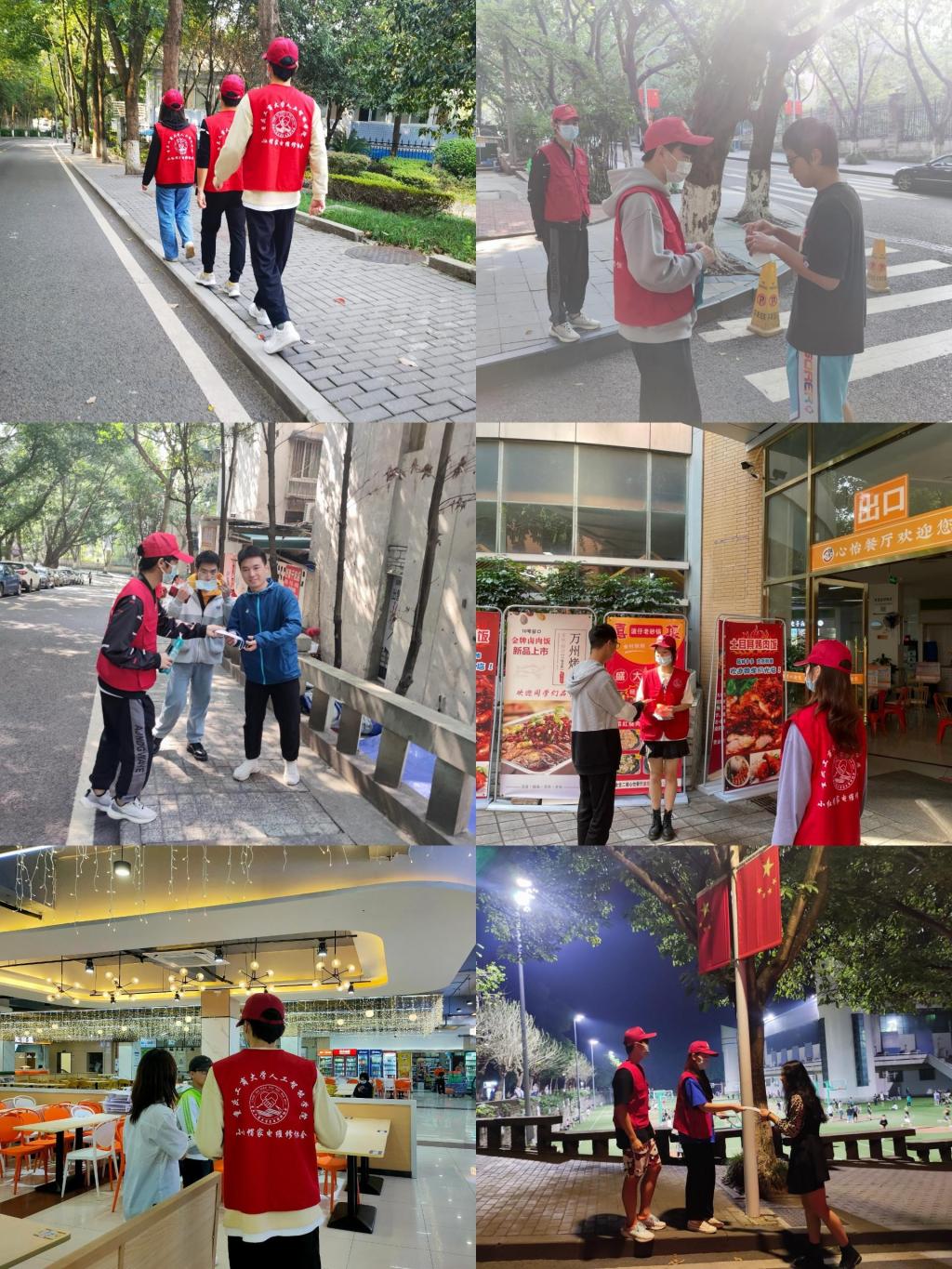 “疫情就是命令,防控就是责任。”志愿者招募令一经发出,同学们纷纷踊跃报名,希望为校园疫情防控、平安守护贡献一份力量。10月19日起,每天早上8点,校园巡逻的志愿者们到指定地点领取“翠小青”志愿者马甲,开始在校园巡逻起来。从南操到南区,从七教到图书馆,从八教到田家炳,从北操到翠湖,4个小分队各司其职,关注校园安全,提醒同学们正确佩戴口罩,减少人员聚集。从早上8点到晚上9点,一共6个班次的轮换,大家都有序交接认真工作,绝不马虎。午餐和晚餐的时间, 筱园、松园、菊园、兰园食堂的大门口和各个楼层,志愿者也陆续到岗,他们拿上喊话器,提醒师生佩戴好口罩,间隔1米,有序取餐。他们精神饱满,热情用心。志愿者们说,我们能做的不多,能做一点算一点,校园需要大家的共同守护。