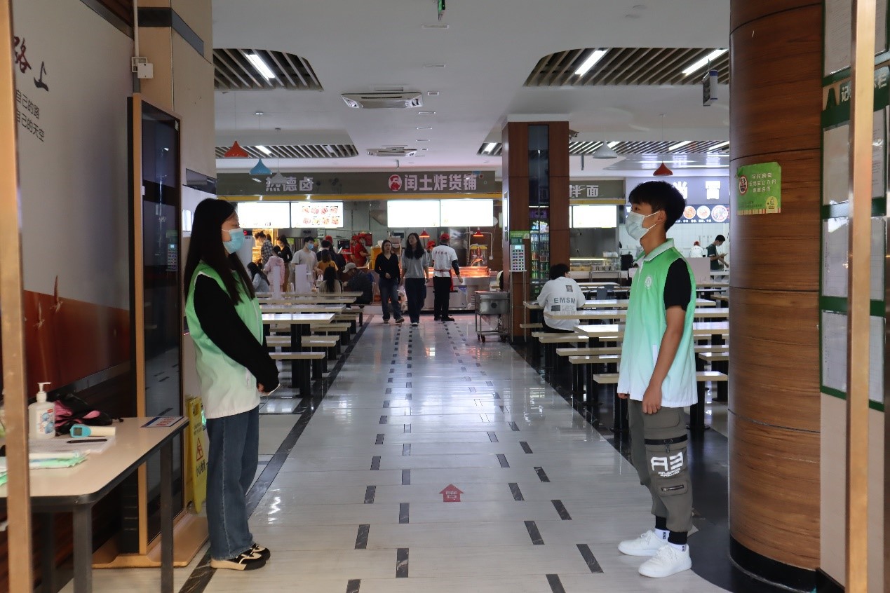 连日来的疫情形势越发严峻,校园防控进入更加严格的管理。标准、规范、减少聚集和流动,校园里的师生都在积极行动。有这样一支队伍,他们每天上午、下午都按时出现在校园的各个食堂和道路上,开展秩序维护和安全提醒的工作。从10月19日起,校团委、校青年志愿者协会面向全校招募志愿者,在食堂和校园里开展安全志愿维护工作,该项工作已不间断开展了35天,共计1592位志愿者参与其中,累计服务时长达2445小时。