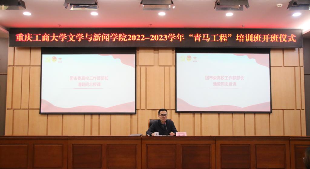 4月3日上午,我校文学与新闻学院开展“青马工程”培训,邀请到团市委高校工作部部长潘毅为培训班授课。文学与新闻学院党委书记于频,党委副书记、院长殷俊,党委副书记、纪委书记程元元出席和学院青马工程学院参加,仪式由程元元主持。