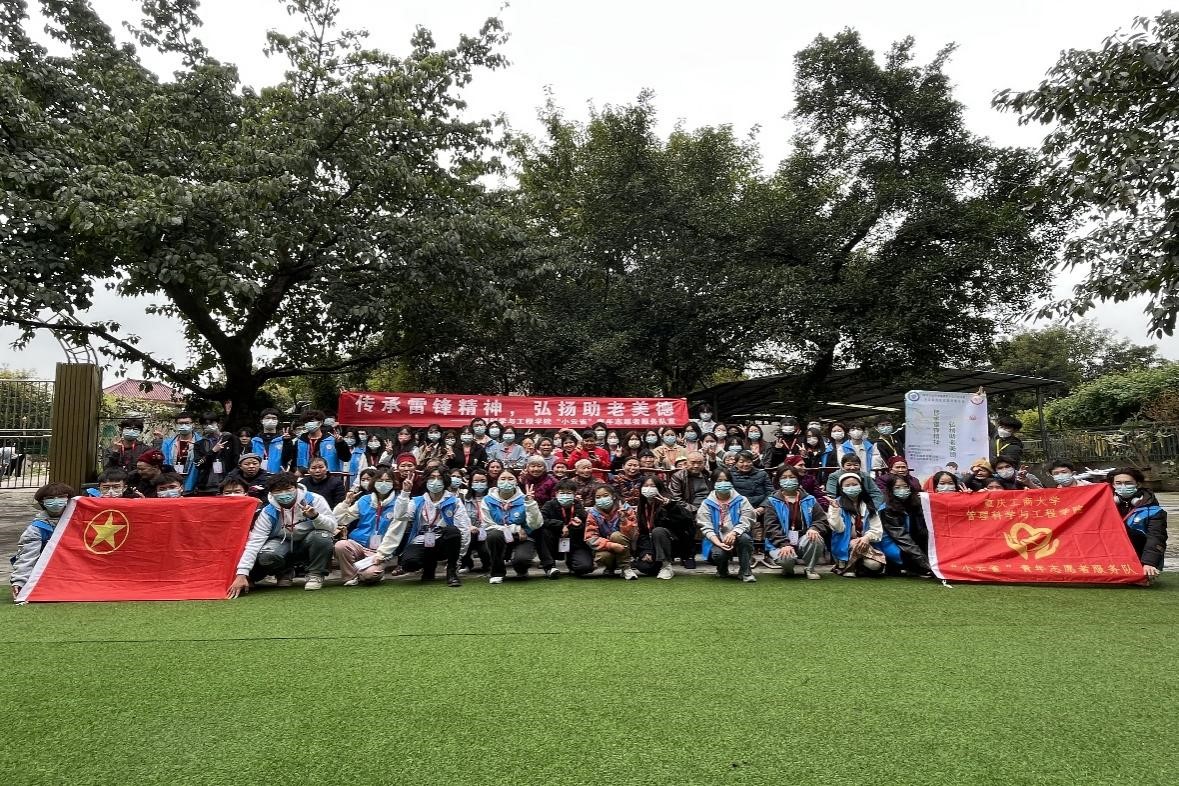 为弘扬中华民族乐于助人、敬老爱老的传统美德,深入学习贯彻党的二十大精神,落实习近平总书记对深入开展学雷锋活动作出的重要指示精神。3月18日,我校管理科学与工程学院“小云雀”青年志愿者服务队在重庆市南岸区福源养老南山总院举行了以“传承雷锋精神,弘扬助老美德”为主题的敬老活动。