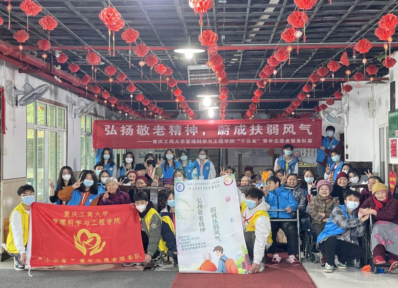 为推动大学生志愿者志愿服务常态化,持续开展“弘扬雷锋精神,关爱老年群体”志愿服务活动,推动雷锋精神薪火相传,3月25日,管理科学与工程学院“小云雀”青年志愿者服务队在重庆市南岸区福源养老南山总院举行以“弘扬敬老精神,蔚成扶弱风气”为主题的线下敬老活动。