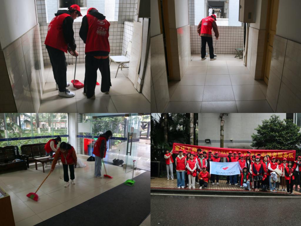 下午16:30,活动正式开始,志愿者们在宿舍楼下集合整队,分成两组到指定的宿舍楼各个楼层进行清扫。在清扫过程中,队员们不放过每一个角落,认真检查每个楼梯口和每层宿舍廊道。大家相互配合和帮助,顺利完成本次清扫活动。