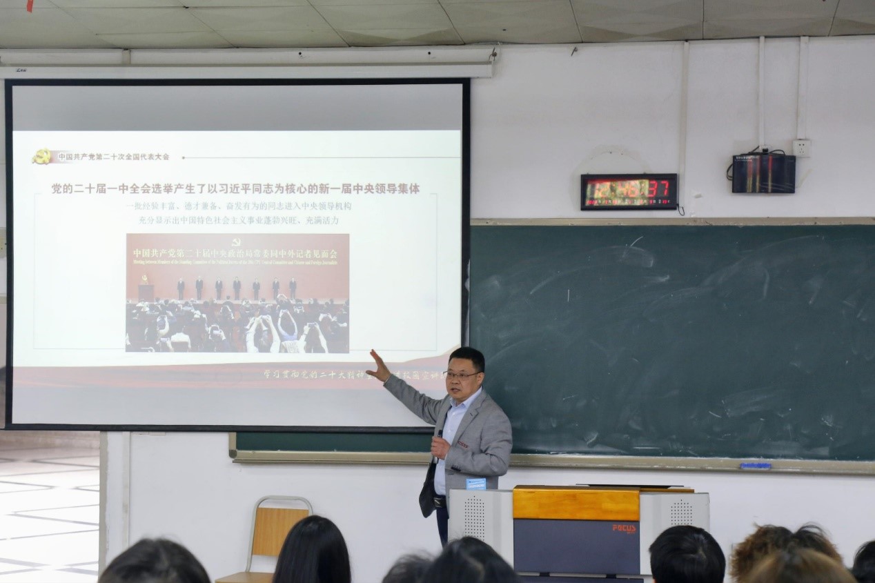 培训会上,陈龙国紧紧围绕党的二十大报告和《关于加强和改进党的群团工作的意见》等文件精神,作了“以中国式现代化推进中华民族伟大复兴”的主题宣讲,分别从党的二十大的基本情况、中国共产党的中心任务、中国式现代化的一般与特殊、中国式现代化的本质要求、战略和原则、中国式现代化的具体路径和中国式现代化的重大意义等六个方面展开讲述。最后,陈龙国强调,希望同学们认真学习,努力成为一名新时代合格的马克思主义者与优秀中国青年,不负青春韶华,不负人民期待。