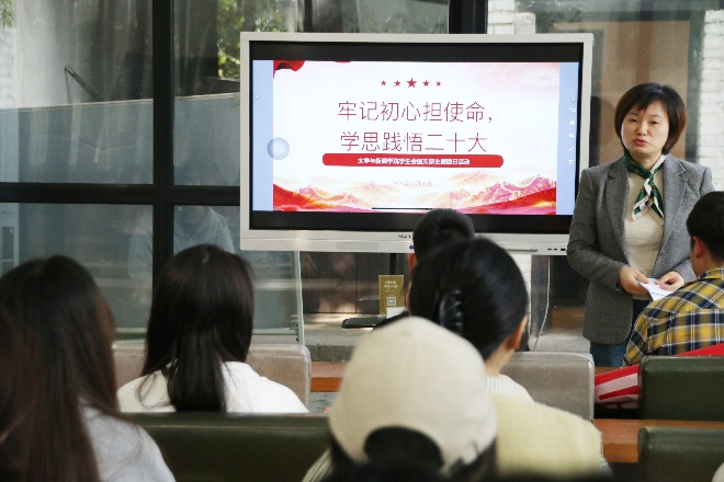 参观完《挺进报》旧址后,刘平老师以“踔厉奋发启新程,挺膺担当向未来”为主题为学生支部成员上了一堂生动的“思政课”,她指出先烈的故事对于加强党的作风建设具有重要影响,并强调文新学子们要坚定理想信念,切实增强自身道德修养。随后,李琦老师分享了参观《挺进报》旧址的真实感想,并希望大家能够把此次二十大精神宣讲学习运用到自己的未来学习规划及人生发展中。活动最后,学生代表王澈也发表了此次的感想并希望同学们能够成为“一专多能”的新型媒体人以及能担责任的时代新人。