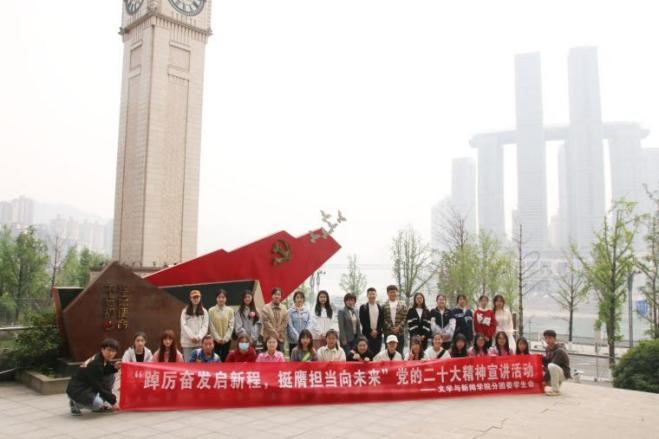 为深入学习宣传贯彻党的二十大精神,把握革命文化的红色价值意蕴与丰富时代内涵,重温老一辈革命家的爱国情怀和坚毅斗志,增强学生支部成员的理想信念和道德修养, 4月8日下午,30名文学与新闻学院学生支部成员在学生一支部书记刘平、二支部委员李琦两位老师带领下前往《挺进报》旧址参观学习,开展党的二十大精神主题宣讲教育活动。