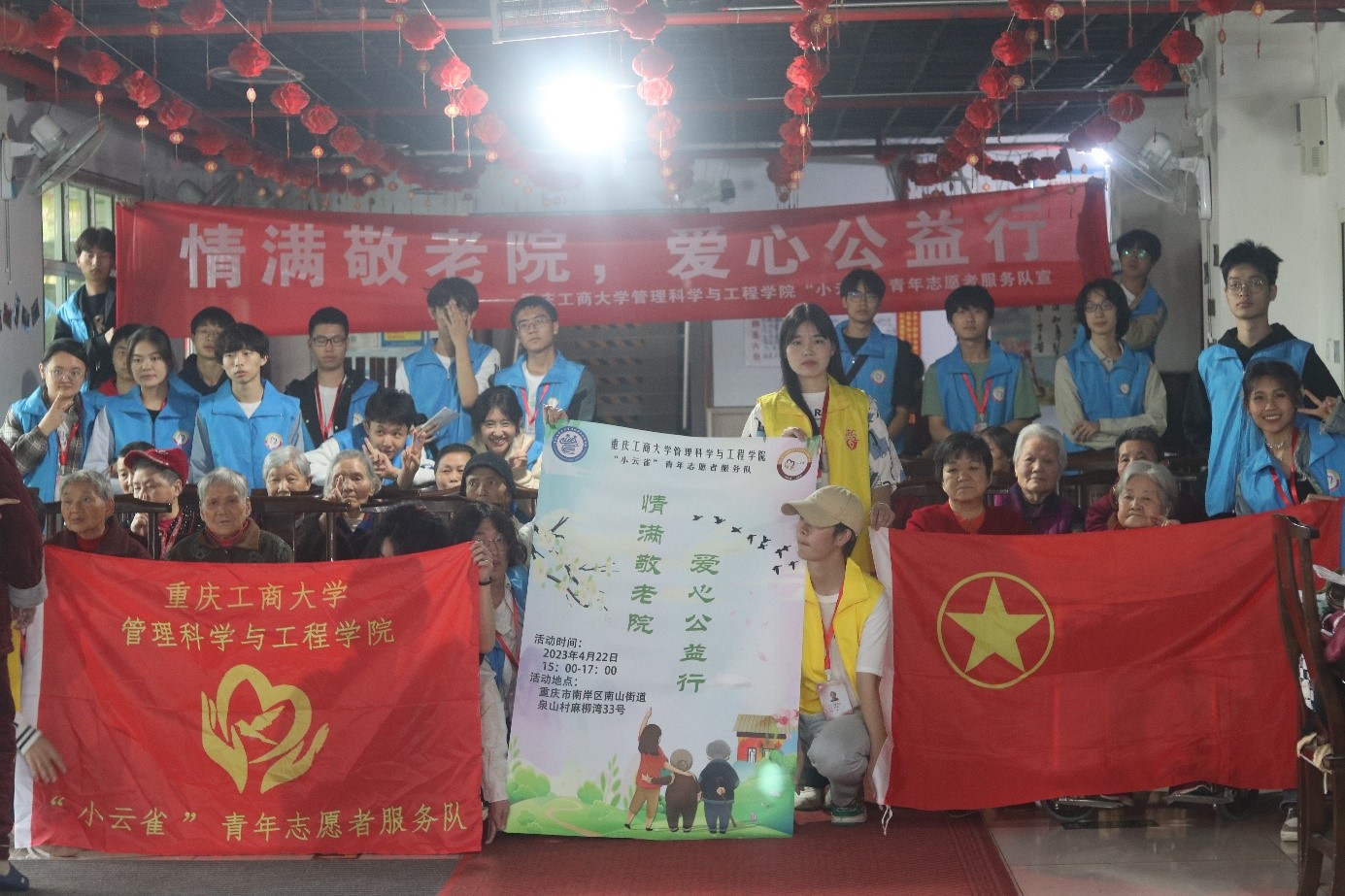 为弘扬青年志愿者“服务大众,锻炼自我”的精神,提升青年志愿者奉献社会的责任感、使命感、荣誉感。2023年4月22日,我校管理科学与工程学院“小云雀”青年志愿者服务队在重庆市南岸区南山街道泉山村麻柳湾33号福源养老院举行以“情满敬老院,爱心公益行”为主题的敬老活动。