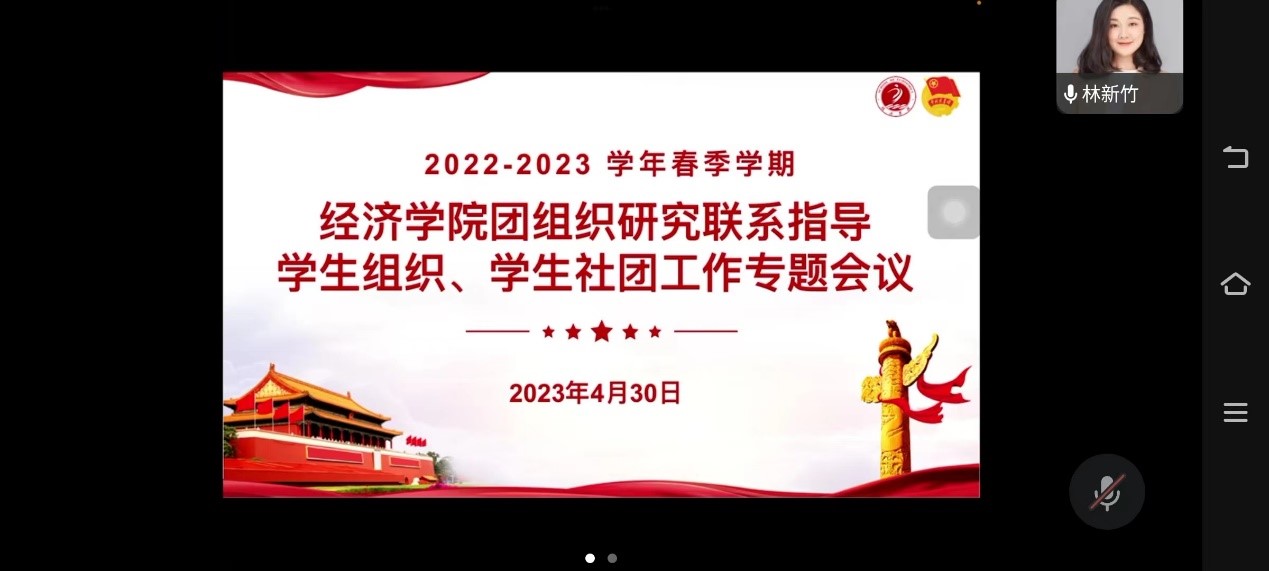 为深入笃学习近平新时代中国特色社会主义思想,贯彻落实党的二十大精神和习近平总书记关于青年工作的重要论述,进一步落实团中央、教育部《关于巩固高校学生会(研究生会)改革成果的若干措施》和《高校学生社团建设管理办法》精神,全面推进学院学生会巩固改革成果和社团建设管理各项工作落实落细,4月30日下午7时,经济学院分团委召开了指导学生会组织、学生社团工作专题会议。会议由经济学院张子璇同学主持。