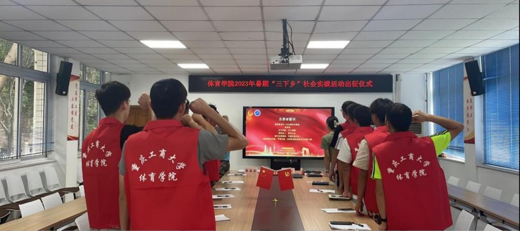 会上,傅杨带领全体实践团成员进行出征宣誓,他们表示,将秉承“守正坚卓,砺学精技”的院训精神,在社会实践中彰显体院人的意志品质,为社会贡献智慧和力量。最后,党总支张薇薇副书记为本次暑期“三下乡”社会实践队伍授旗。