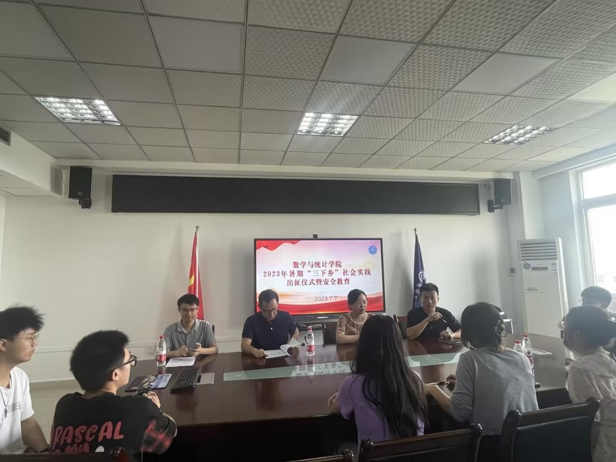 7月7日下午,数学与统计学院2023年暑期“三下乡”社会实践活动出征仪式在启智楼80602顺利举行,学院党委书记潘焱、党委副书记吉杲、分团委书记吴卫、指导老师郭盛亮博士及11名实践团队代表参与此次出征仪式。