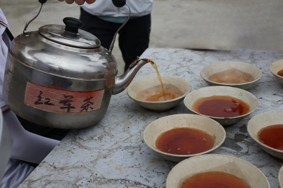 团队成员沿途走访了枫香树、大垭口、感恩小院等旧址,进行了党史教育、编红军草鞋、喝红军茶等系列活动。在枫香树下,团队成员围绕“长征路上学党史”主题开展了一次党史学习教育,在学思践悟中感受光辉党史、锤炼党性修养。在重走长征路的途中,红军战士“反穿草鞋”的故事展现出先辈们不屈不挠的革命精神,温暖人心的红军茶体现出人民群众对党的信任与感恩之情。“红军不怕远征难,万水千山只等闲”的英雄气概激励着广大青年坚定理想信念,传承和弘扬伟大长征精神,用理想之光照亮奋斗之路,用信仰之力开创美好未来。