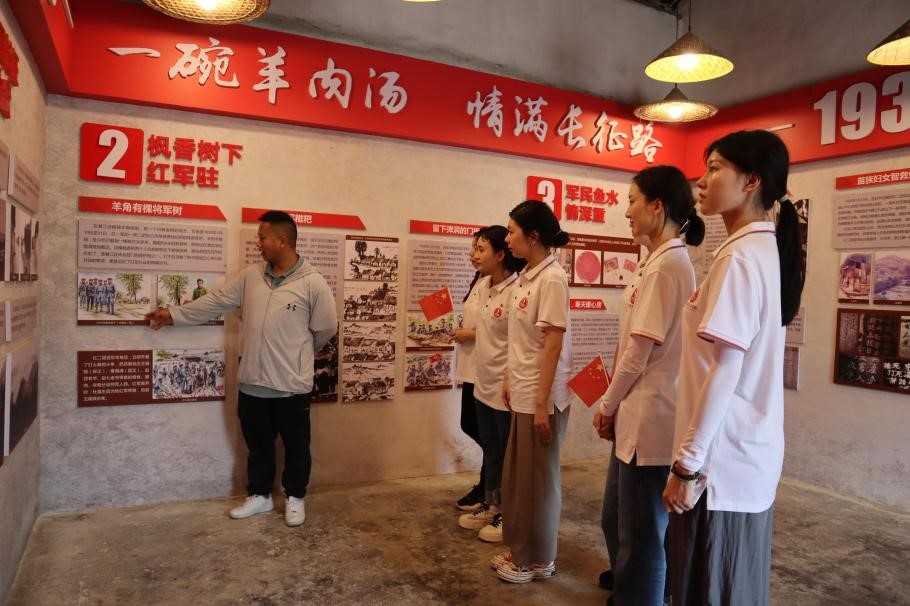长征是红军与人民群众永结同心的远征,长征书写的既是豪情万丈的英雄史诗,也是军民一新、患难与共的光辉篇章。在一碗羊肉汤陈列馆,羊角村工作人员向团队成员讲述了“一碗羊肉汤”的故事,寒冬里红军送给孕妇的羊肉汤,代表了红军与民共处的真心,更是“军民鱼水情”的生动映射。“红军买糍粑”“红军盐巴换炒面”“苗族妇女智救红军”等历史典故,体现出中国共产党领导的工农红军始终植根人民、联系群众、宣传群众、服务群众、团结群众、依靠群众,将人民立场作为根本立场。中央红军长征过綦江,在綦江境内大力传播了革命真理,倡导了革命精神,唤起了革命觉醒,播下了革命的火种。奋力走好新时代的长征路,要更加坚定自觉地走好群众路线,永葆初心使命。