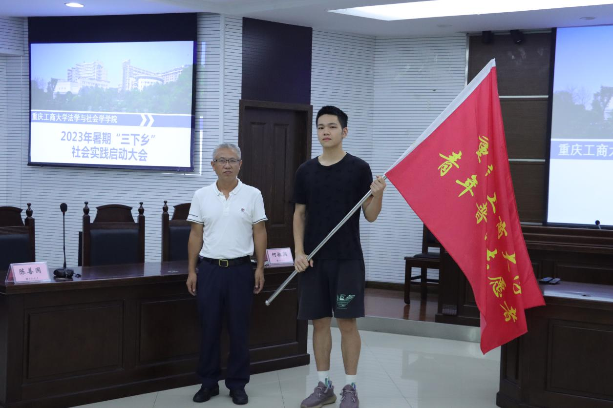 会上,陈善国代表学院党委作动员讲话。他向参加2023年暑期“三下乡”社会实践活动的志愿者们提出三点希望和要求:一是要以积极的心态和饱满的情绪走进基层面对群众,心怀“国之大者”,将个人发展的目标与党和国家的蓝图相结合;二是要温良恭俭让,时刻注意行为举止,以高标准严要求进行社会实践活动,用青春不断擦亮“重工商大名片”;三是要树立安全意识,严守安全红线,切实保障自身的人身安全、财产安全和信息安全,做到乘兴而去,全身而归。最后,他祝愿同学们在志愿服务过程中能有所收获有所感悟,取得圆满成绩,并为2138CC太阳集团青年普法志愿者服务队授旗。