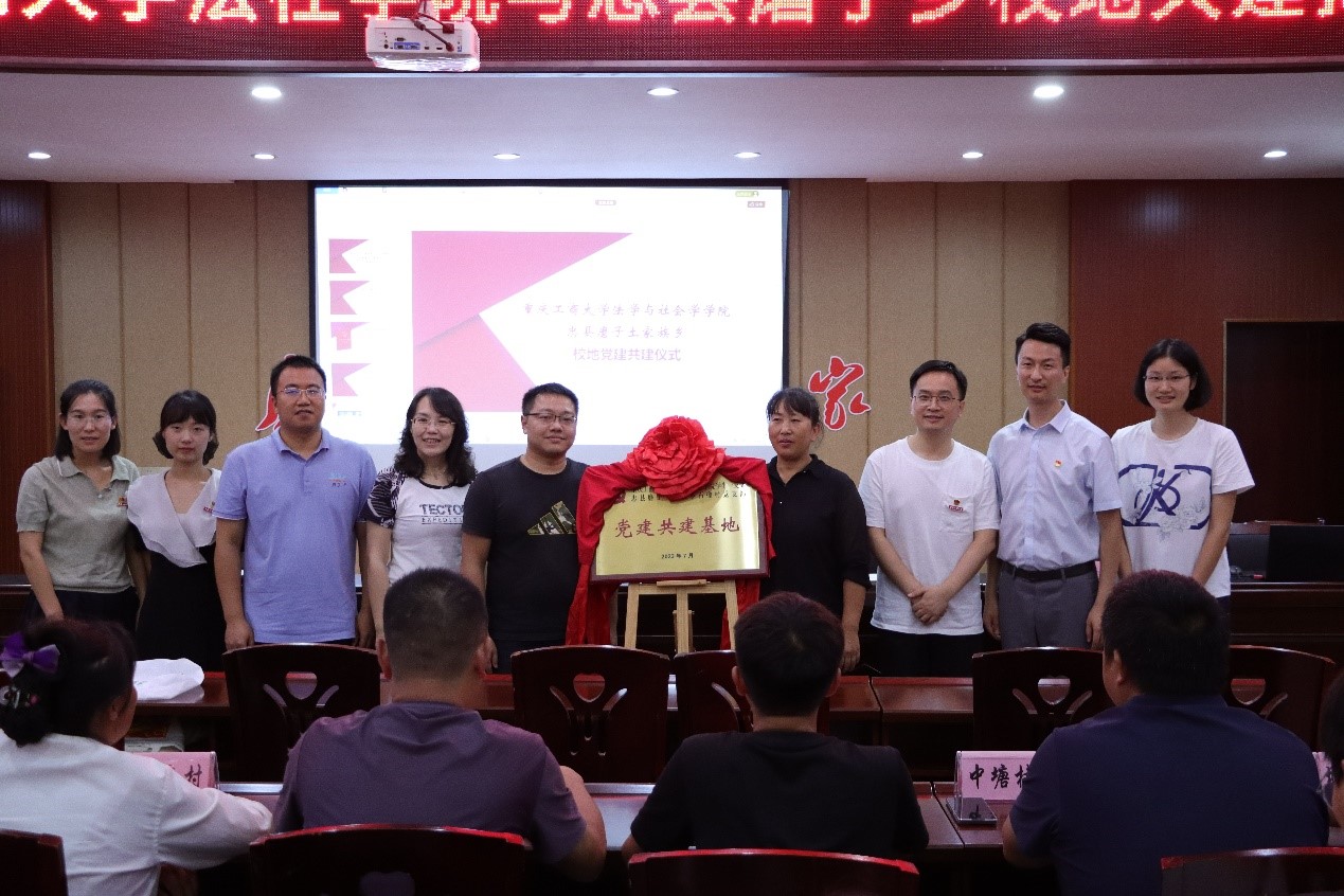 校地党建共建揭牌仪式上,磨子乡党委副书记张平安代表乡党委对学院在村歌创作、法律援助方面提供的智力支持表示感谢,李莉莎代表学院党委郑重承诺,共建仪式是校地党建合作的开端,未来学院将会从各个方面为磨子乡的文化振兴、法治振兴、基层治理贡献力量。在乡村振兴战略的“牵线搭桥”下,罗观与石梯村党支部书记罗仕琼共同为校地党建共建基地揭牌。