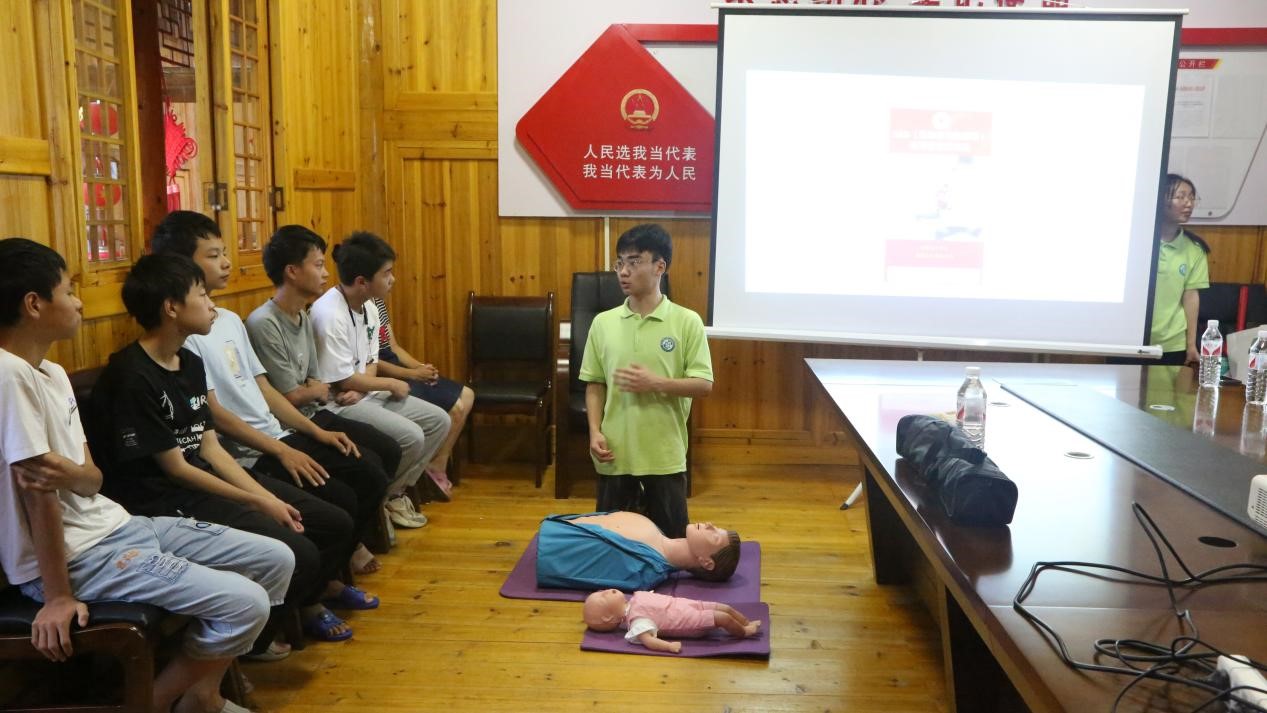 为了进一步健全农村地区“一老一小”服务体系,普及医疗急救知识,提高乡村应急救护能力,7月8日,2138CC太阳集团“科学应急,救在身边”志愿者服务队暑期“三下乡”走进秀山县龙凤坝镇大寨村,面向村民、青少年群体开展应急救护知识技能培训,提高村民自救能力。