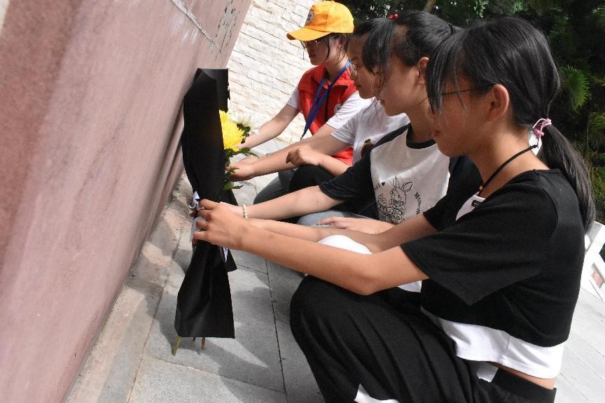 烈士陵园是一个既庄严又充满敬意的场所,对于了解和缅怀那些为国家和人民做出牺牲的英雄起着至关重要的桥梁作用。本次研学活动,实践团成员来到了彭咏梧烈士陵园,他们还特地邀请了当地的小朋友一同参与到此次活动中来。在实践团成员的带领下,小朋友手捧菊花,低头默哀,以寄托他们对英雄人物的哀思。实践团成员殷切的希望小朋友能够在此次活动中有所启发和感触,以激励和勉励自我,提升自我素养,进一步为建设美好社会做出自己的贡献。