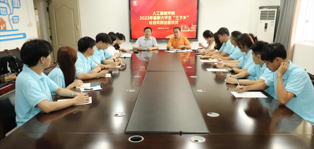 为学思践悟习近平总书记关于青年工作的重要思想,全面贯彻落实党的二十大精神,以实践培育人才,发挥专业优势,服务时代乡村建设,7月11日下午,人工智能学院在慧智楼90810会议室举行2023年暑期“三下乡”社会实践出征仪式。学院党委书记何希平,院长唐亮贵,党委副书记张未,辅导员陈雪梅、邹润玲、刘昶以及实践团成员参加了本次出征仪式。仪式由学院党委副书记张未主持。