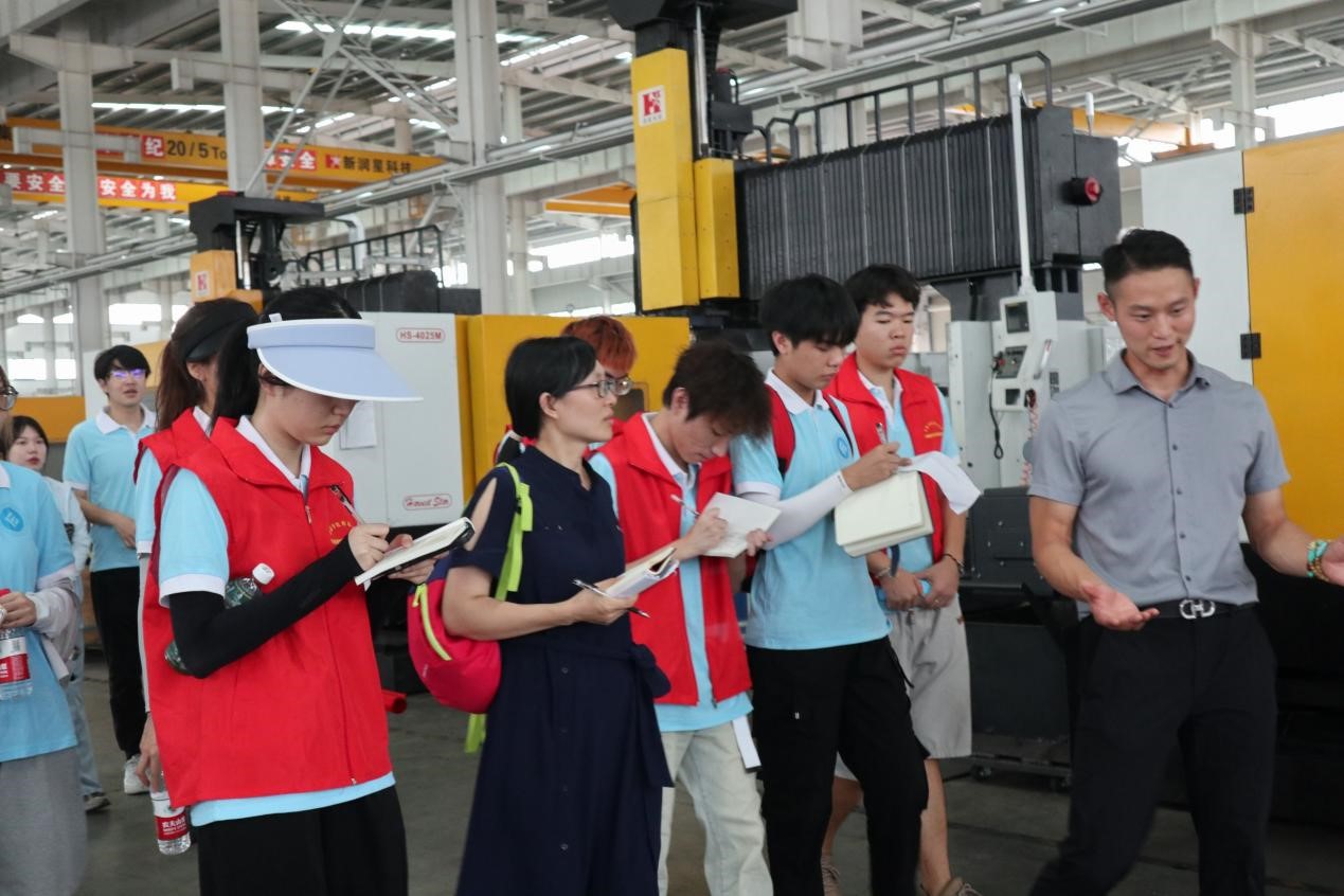 实践团首先参观了新润星科技有限公司。新润星公司主要从事于数控机床的研发、生产、销售及服务,是国内先进的高端智能装备制造基地。在周文斌、樵健两位副总经理的带领下,实践团先后参观了公司的装备制造车间、光机装配车间、调试精度车间。在参观过程中,周文斌谈到,公司选择入住乌杨新区,是因为自身的乡土情怀以及政府的优惠政策。公司制造车间的高端装备多为日本进口,在借鉴进口装备的基础上,自主研发了龙门一号,并获得了国家专利。在装备的生产上,公司始终坚持“精益求精”的理念,得到了客户的一致好评。在访谈中,实践团成员提出“政府对公司的支持主要体现在哪些方面”、“公司的环保处理方式”、“公司在整个装备制造业中的竞争压力”等问题,两位副总经理一一作出了回答。在提及“竞争压力”这个话题时,樵健感慨说:“只有掌握了高端核心技术,企业才能站住脚跟,同学们在学习中,也要不断努力向上,争做‘高端’人才才有出路!”同学们感悟良多,受益匪浅。