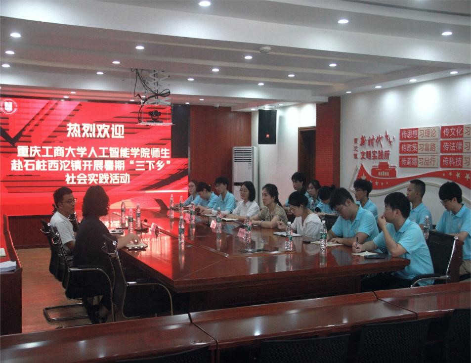 为推动学院暑期大学生“三下乡”社会实践高效开展,提升社会实践成效,7月12日下午,人工智能学院赴石柱西沱镇社会实践团的师生与西沱镇政府领导在镇政府办公楼二楼会议室举行见面交流会。