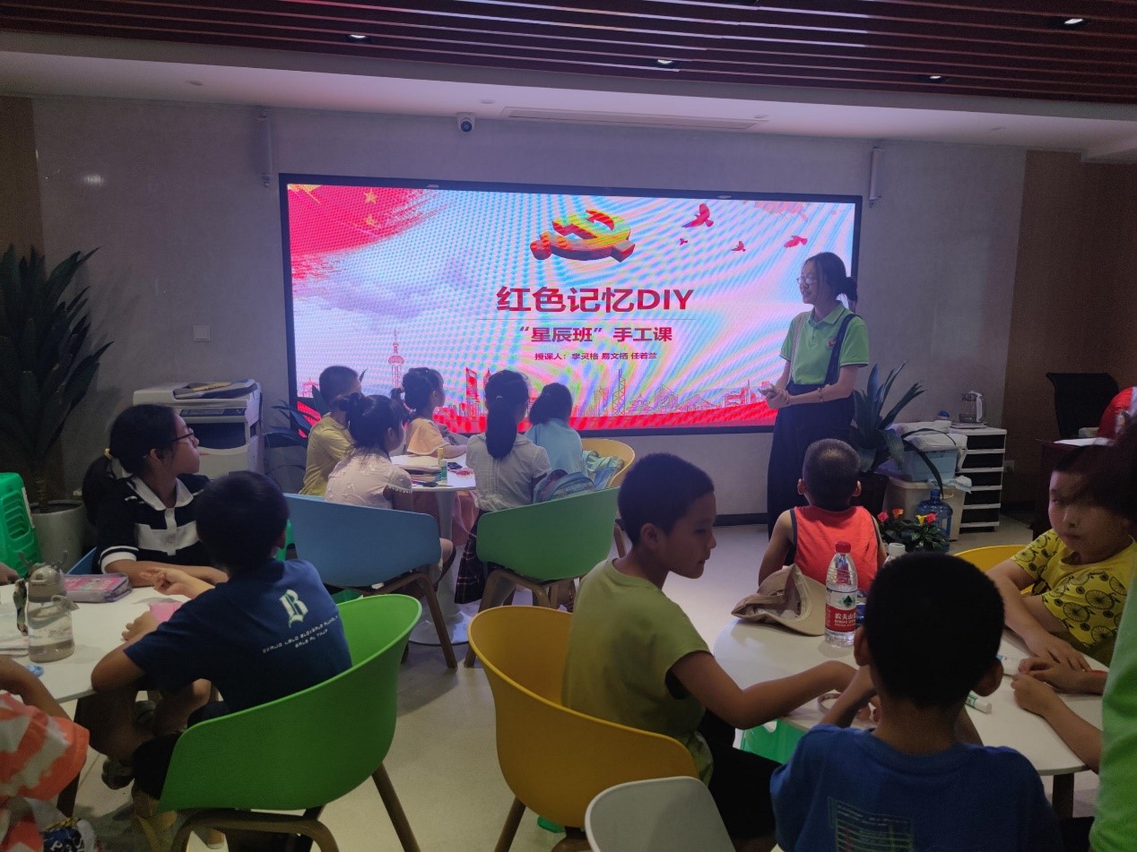 为了丰富社区小朋友们的暑假生活,提高他们的艺术素养和创造力,同时寓教于乐,让小朋友们在绘画的过程中更加深刻的体会红色文化,实践团于7月5日开展了主题为“红色DIY”的红色文化手工课。