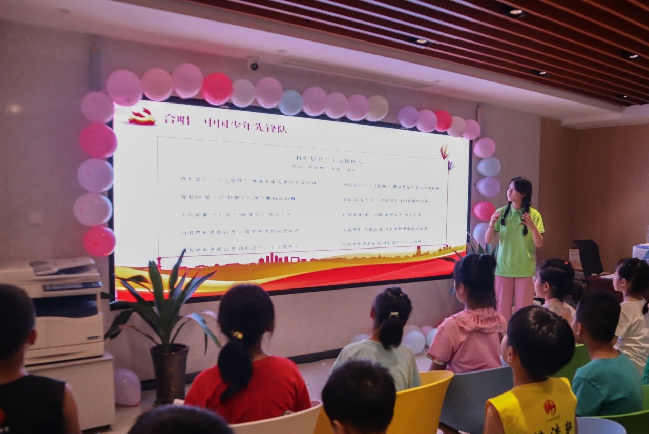 《闪闪的红星》《少年先锋队队歌》一首首耳熟能详的儿童歌曲婉转悠扬,飘荡在整个明媚的教室,滋润着小朋友们的心田。实践团成员通过给小朋友们教授经典的红色歌曲,用音乐的方式培养小朋友们的爱国意识与勇争先进的精神。在学习音乐的同时,实践团成员也教授了小朋友《闪闪的红星》手语操,让他们通过手臂与手指舞动,传播无声的力量与真挚的温暖。