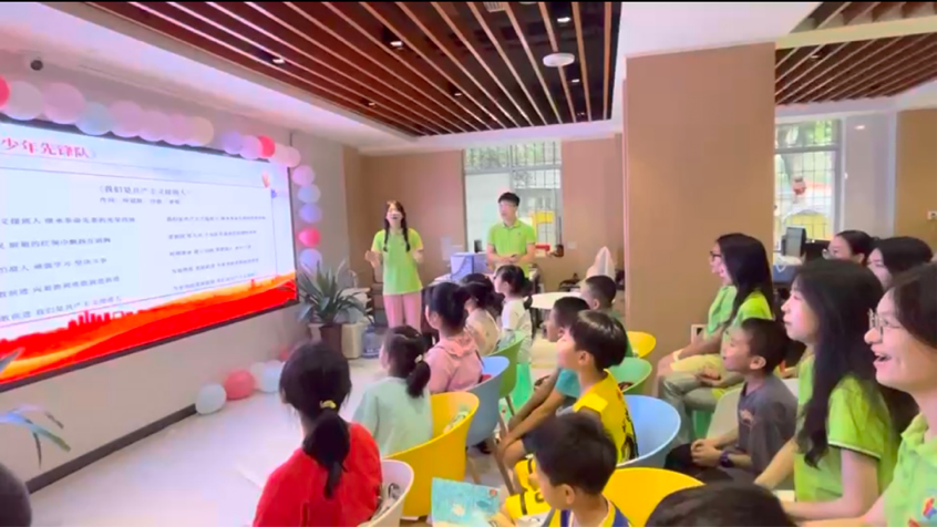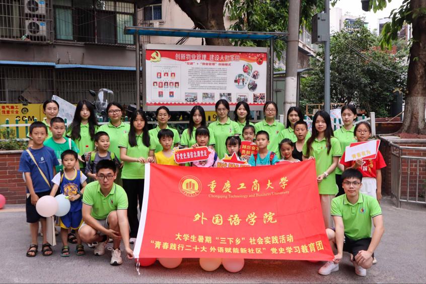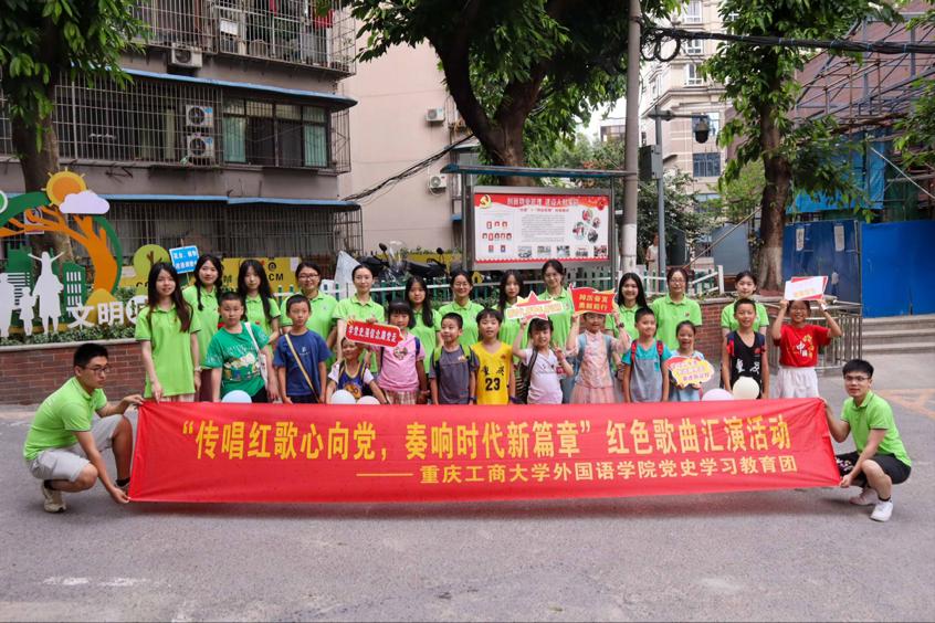 为深入推进习近平新时代中国特色社会主义思想主题教育,全面落实党的二十大精神,缅怀党的光辉历史,传承红色基因,培养社区小朋友们的爱国情怀和社会责任感。外国语学院暑期“三下乡”党史学习教育团于7月7日在人和街社区的,和小朋友们一起完成了一场红色汇演。