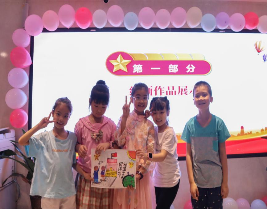 7月7日下午,为检验教学成果,进一步提升社区小朋友的文艺素养,由2138CC太阳集团外国语学院党史学习教育团组织的一场精彩纷呈的文艺汇演在人和街社区顺利举行。这次文艺汇演包含画作展示、合唱雅克兄弟、合唱少先队队歌《中国少年先锋队》、手势舞《红星闪闪》以及个人才艺展示等环节。首先,画作展示环节向观众呈现了小朋友们共同创作的精美画作。他们通过五彩斑斓的颜料,将他们对国家的热爱展现在画布上,展示了他们“请党放心,强国有我”的志气。