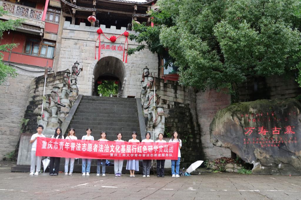 为进一步学习贯彻党的二十大精神,传承和弘扬中华民族爱国主义史诗,引导青年大学生深入培育和践行社会主义核心价值观,7月14日,法学与社会学学院青年普法志愿者法治文化基层行红色研学实践团赴石柱土家族自治县革命烈士陵园与万寿古寨开展学习调研活动。