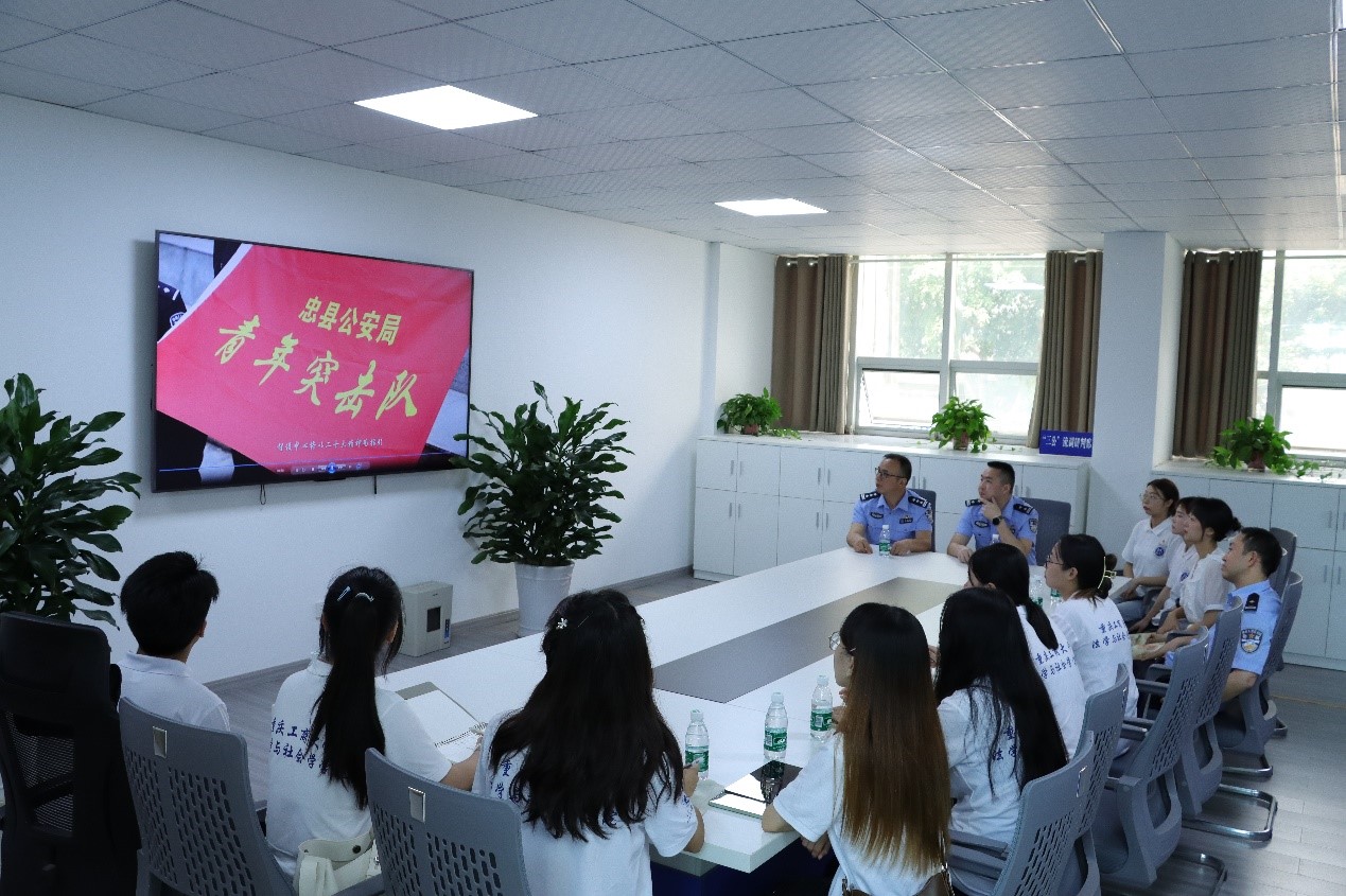 服务队师生在忠县公安局网络安全保卫大队民警开展了反诈经验交流座谈会。大队长乐勤炼介绍,自去年5月忠县公安局启用反诈智慧中心以来,已办理电信网络诈骗案件400余起,但目前忠县的反诈工作形势依然非常严峻。“很多时候,被害人就只是晚接了我们的电话几分钟。”乐勤炼向同学们解说,“涉案资金就已经被流转至数十张境外的银行卡上,大大增加了公安破案和追回的难度。”最近几年电信网络诈骗犯罪的作案工具及作案手法不断升级,利用“刷单返利”“招聘兼职”“AI换脸”等方法和手段实施诈骗的案例屡见不鲜。服务队师生与民警在交流中均表示,将预警劝阻与教育宣防工作相结合,深化政法类高校院系和公安机关的合作,有利于开创反诈教育宣传工作的新篇章。