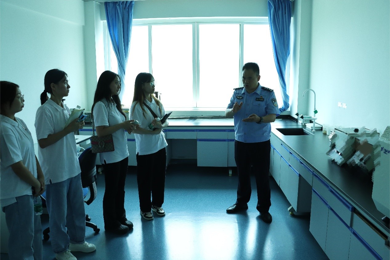 服务队一行在刑事科学技术实验室参观了物证保存室、法医物证室、电子物证检验室、手印实验室、影像实验室。“物证保存室的温度为什么感觉比其他房间低很多?”“通过对证物生物检测能帮助刑警破案吗?”面对同学们抛出的一个又一个问题,刑事科学技术室主任李三海都耐心地一一作出解答。此外他还介绍了刑事科学技术实验室的基本情况,以及技术室民警获得过的国家级荣誉、奖励勋功、科研成果等。大学生志愿者们进一步认识到了刑事科学技术在协助侦破案件的过程中起到的不可替代作用。