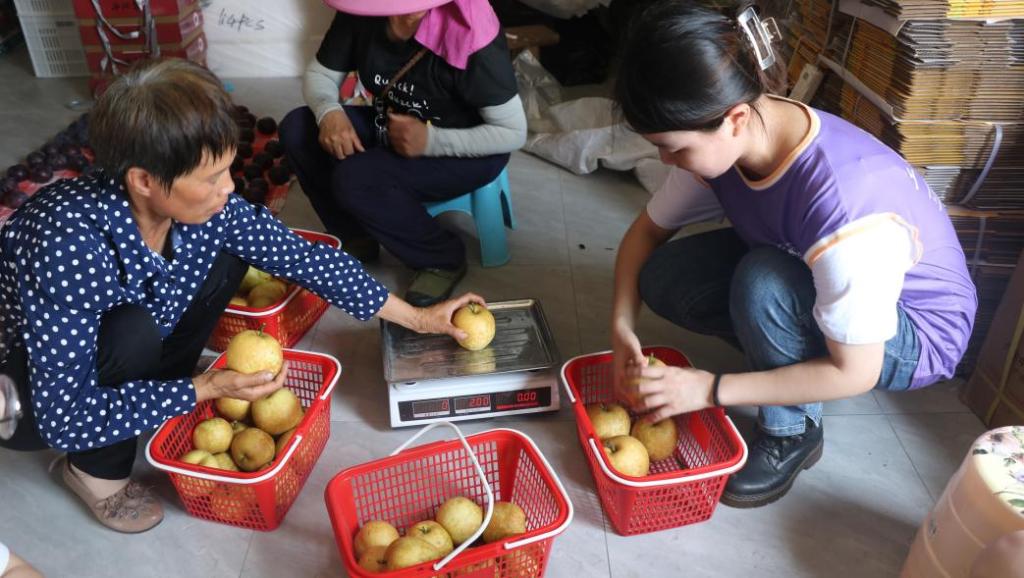 7月7日至7月9日,智囊团成员对直播脚本进行反复修改并背诵,确定人员及物资安排,联系直播公司进行专人培训,租借直播设备,同时派人前往胜天村进行场地布置和搭建。在帮助胜天村搭建好抖音平台店铺之后,智囊团开始运营胜天村抖音账号,进行直播预热视频以及海报制作,总计播放量达4000次,点赞量超过300,在正式直播前就吸引了部分粉丝。7月10日上午,智囊团所有成员到达胜天村,反复进行直播演练,以保证之后的直播活动顺利开展。直播活动开展之际,智囊团勇于挑战自我,用专业的知识和认真的态度向观众热情洋溢地介绍胜天村的风土人情以及翠冠梨的特点、口味、价格等。之后,智囊团分别于7月10日晚、7月11日上午、7月12日上午开展室内翠冠梨直播,于7月12日晚以当地“村BA”比赛现场为背景,首次开展关于翠冠梨的户外直播。4次直播总计播放时长达300分钟,点赞量超10万,超越了99%同级主播,观看人数累计2500余人,粉丝增长数量达到250余人,成交量达50单,成交额达2200元,共计售卖翠冠梨123千克。
