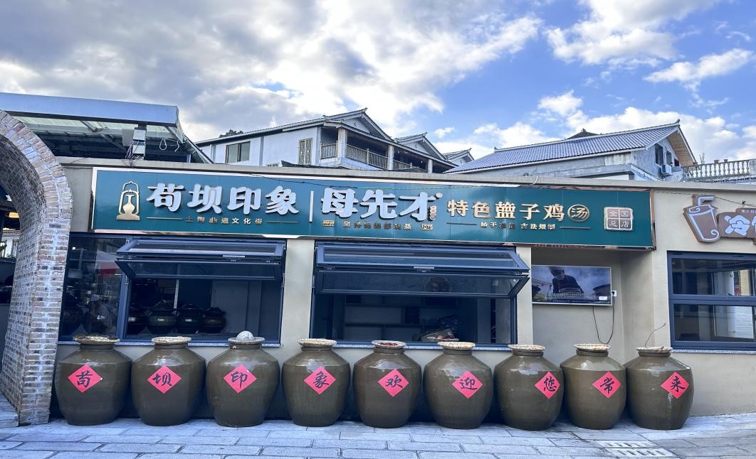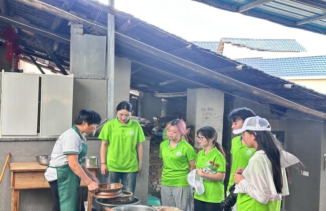 实践队成员走进花茂村,看到连片的绿色稻田惊叹不已,感受当地绿色农业发展。据悉,花茂村原名“荒茅田”,意指贫困荒芜,后改名“花茂村”,寓意花繁叶茂。在党和国家的领导下,系列政策指引下,花茂人一步步践行“绿水青山就是金山银山”的理念,改良种植技术,实现了绿色农业、田园风光与旅游经济的有机融合。微风拂过连片的稻田,连绵的青山,碧绿的稻田与点缀其中的幢幢白色民居构成一幅完美和谐的乡村振兴新画卷。走进附近农家乐,村民热情地为实践团成员介绍特色美食—花茂盬子鸡,这是村民母先才传承百年陶艺,制作盬子为器皿,通过焖炖而成的美食,将文化体验、饮食体验与制陶技术融合发展,不仅开设了自己的陶艺馆,带动村里产业发展,也带领村民走上致富路。