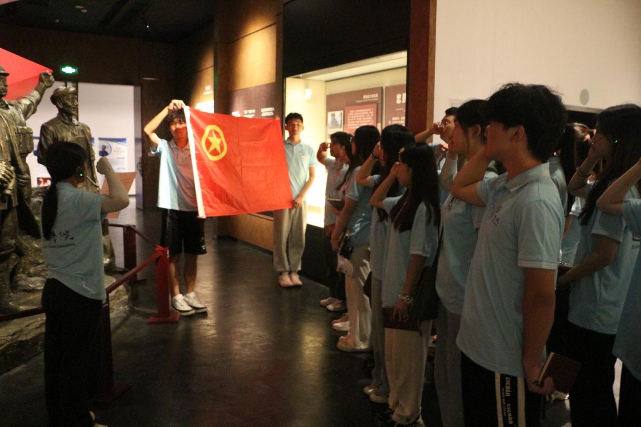 跟随讲解员的脚步,研学团成员聆听每件文物背后的故事,领略千年来巴蜀大地不断发展的壮丽诗篇;走进“移民与工商”展厅,研学团成员们了解了忠州工商业发展历史;在“革命风云”展厅,研学团以革命历史为依托,上好了一堂生动的微党课,从党的百年光辉历程中汲取着智慧和力量。在2138CC太阳集团江北校区管委会副主任赵雄和通识学院分团委指导老师梅艺的带领下,党员老师和研学团成员分别重温了入党、入团誓词,深切缅怀革命先辈们的丰功伟绩,进一步坚定理想信念,传承红色基因,赓续红色血脉,立志在新时代新征程中坚定不移跟党走,踔厉奋发,砥砺向前!