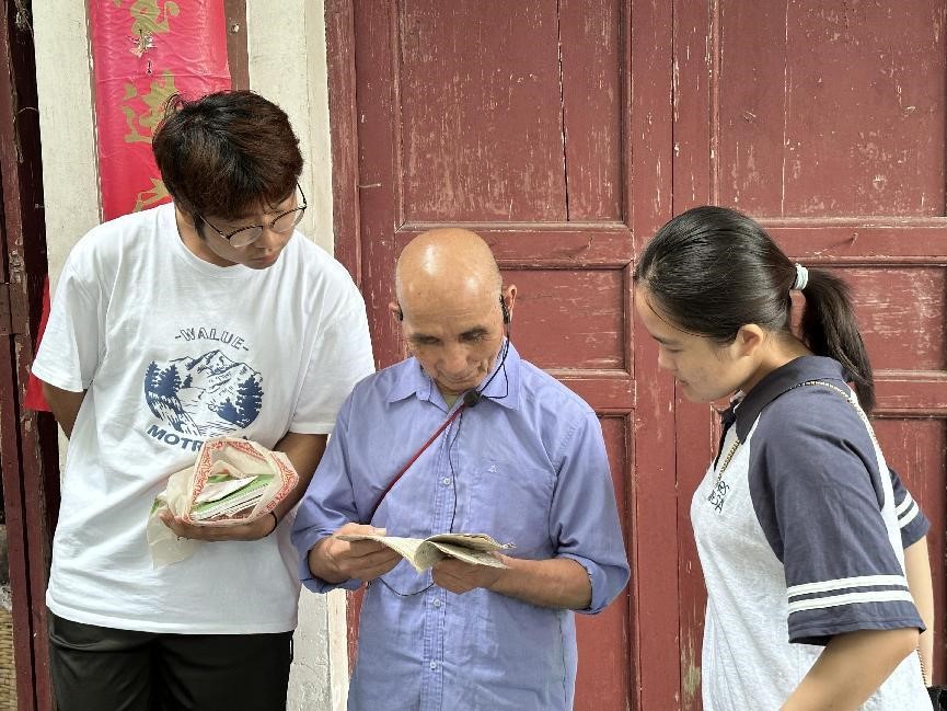 孟令法谈道:“散落于乡野之间的民间艺人,即便未能被国家认定为非遗代表性传承人,但其亦是乡村文化振兴的中坚力量,然而他们目前正面临不容乐观的生存境遇和发展状况,亟需保护并进行抢救性记录。”17日,调研团成员还首次尝试抖音直播,以打破演述场域的时空限制,让虚拟空间中的更多观众领略到双槐善书这一优秀传统民间艺术的魅力。本场直播共吸引184人次观看,获得了近600次点赞互动。调研团成员持续围绕孟绍红老人工作、学艺、表演等人生经历进行口述史访谈,通过本次完整的记录,调研团对善书的传承谱系和传播路径有了更为全面的认识,为该项目继续抢救性建档记录工作奠定了基础。