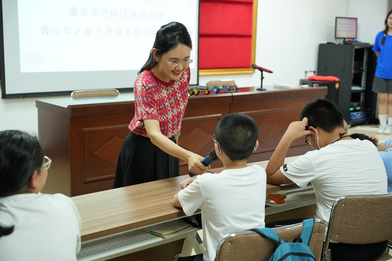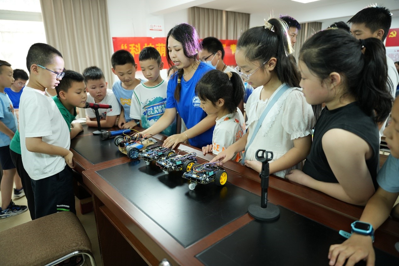 科技萌芽,筑梦未来。机械工程学院青少年之家科普小课堂是“初阳”青年志愿者服务队历时12年坚持专业化志愿服务活动的建设成果,至今已形成完备的课程教学体系。为进一步培养青少年创新精神和实践能力,锻炼青少年科学素养和科学意识,实现青少年与科技的“零接触”,2023年暑期,“青春助农践行二十大,科技育才筑梦新未来”理论普及宣讲团走进巴南区莲花街道,开展为期5天的科普实践课堂活动。7月11日,实践团来到万泉社区开展首场科普宣讲,引领青少年在学习交流中感受前沿科技魅力,在互动体验中感悟科技发展成就。