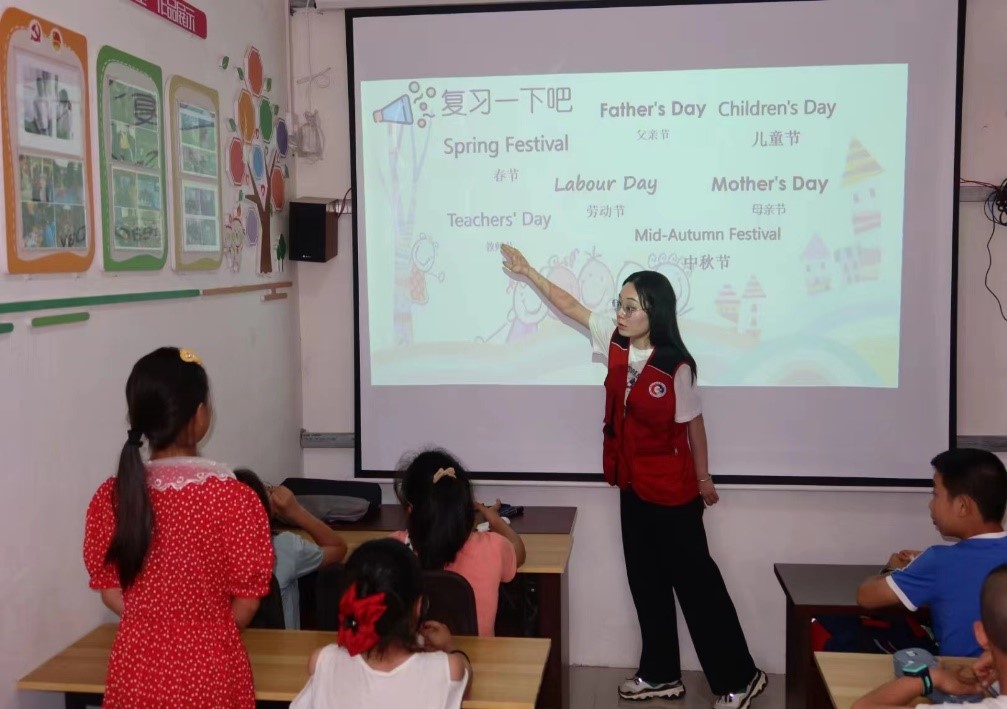 为丰富同学们的暑假生活,激发孩子对英语学习的热情,培养英语学习的兴趣,2023年7月11日,国际商学院暑期“三下乡”社会实践团在重庆市城口县咸宜村青少年之家开展了一场趣味英语课堂,希望通过寓教于乐,让小朋友们体会到学习英语的快乐,感受到不同语言的魅力。