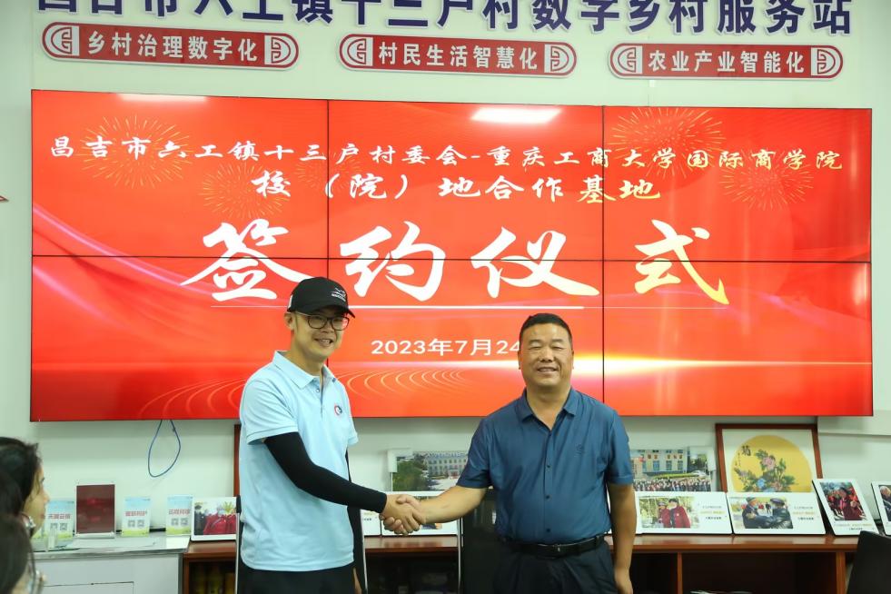 为进一步铸牢中华民族共同体意识,引导和帮助广大青年学生上好理论与实践相结合的“大思政课”,在社会课堂中“受教育、长才干、作贡献”。近日,国际商学院暑期“三下乡”社会实践团前往新疆维吾尔自治区昌吉市六工镇十三户村委开展调研座谈会以及校(院)地合作签约仪式。