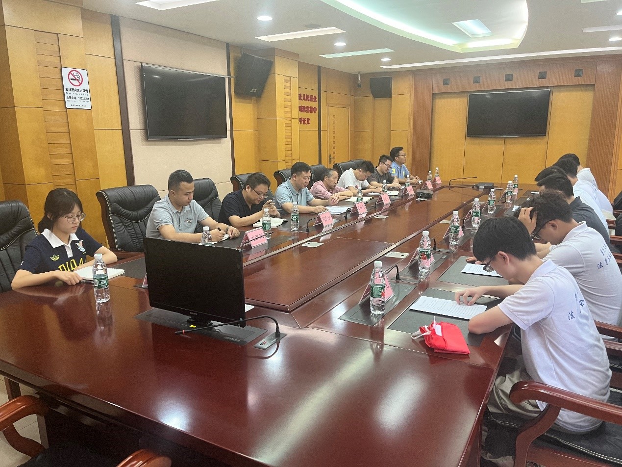 随后,服务队师生与法院领导班子及刑事、民事审判庭法官及助理召开交流座谈会,法院院长关倚琴到场对服务队普法宣传方式方法进行指导。法院党组成员、执行局局长王耀光就法院的机构设置、干警队伍等情况进行介绍,公杰分别从学院的基本概况、专业设置、普法优势及本次“三下乡”社会实践活动的总体安排、预期成果进行介绍,鼓励同学们充分利用此次交流学习机会,提升能力,深入基层,用法治力量助力乡村振兴。