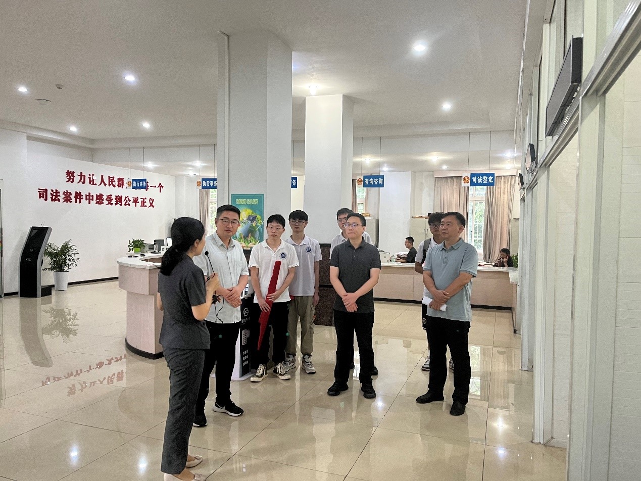 在法院工作人员的带领下,服务队师生参观了立案登记处、执行事务处以及“老马工作室”,对法院的整体构架、部门分工、工作职能以及信息化建设进行系统学习。