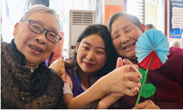 活动设有节目表演、手工制作等环节。志愿者们带来充满激情活力的开场舞《你笑起来真好看》,让老人们脸上挂满笑脸;志愿者们带着老人们一起“动起来”跳健身操,帮助老人们在律动中感受生活的美好。在手工制作环节,志愿者们一对一指导老人制作手工向日葵和枫叶贴画,丰富老人的生活。