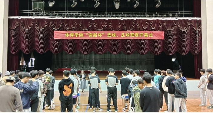 体育学院党总支副书记张薇薇为本次开幕式致辞:通过“迎新杯”篮、足球赛的举办,能增加各班级凝聚力,加强新老生之间的交流,也给同学们自我展示的舞台。希望运动健将们在比赛中,弘扬体育精神,充分展现团结进取、蓬勃向上的精神风貌,赛出风格、赛出水平、赛出友谊,预祝本次“迎新杯”篮球、足球赛取得圆满成功;接着,裁判员、运动员代表郑重宣誓;随后,武术表演队、啦啦操队带来了精彩表演,点燃了赛场的激情。最后,院长范文杰宣布比赛正式开幕,体育系副主任蒋愉为本次比赛开球。
