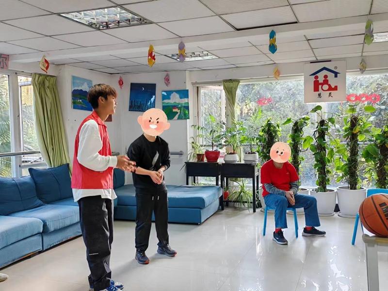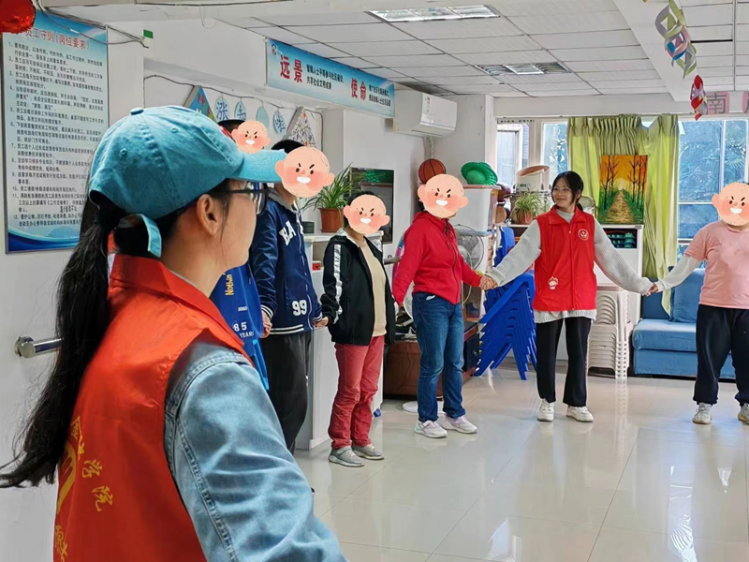 在活动中,志愿者分组与特殊人群进行自我介绍。小小的房间里他们磕磕绊绊的言语与志愿者的慢声细语交织着,话语中充满着相互的理解与包容。在互相了解之后,志愿者与他们一同进行手拉手转圈游戏与推球击球游戏,志愿者耐心地配合着他们进行挑战,用掌声激励着他们去积极尝试。哪怕挑战失败,他们依旧乐观开朗地接受惩罚去邀请志愿者一同表演节目,在表演中展现着愉悦与热情。在志愿者与他们的交流与互动中,志愿者了解到了他们的可爱与积极乐观,志愿者的关怀之心与他们独特的内心世界发生碰撞,他们的积极乐观也感染着志愿者。