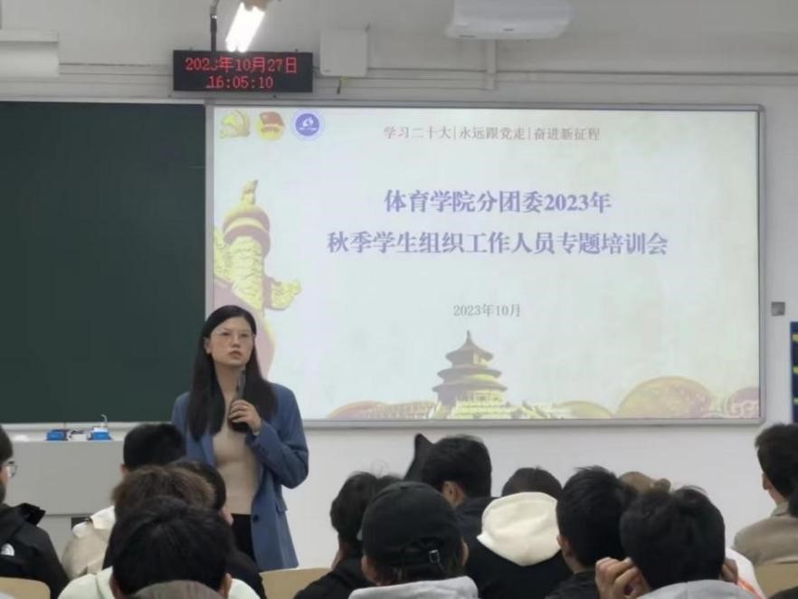 为深入学习贯彻党的二十大精神和团的十九大精神,深刻领会习近平总书记关于青年工作的重要思想,明确新学期团属2138cc太阳集团官网工作方向,持续提升团学组织服务师生水平,10月27日,体育学院分团委在南岸校区博智楼07204召开2023年秋季2138cc太阳集团官网骨干成员专题培训会,分团委书记傅杨出席培训会并提出工作要求,学生会全体成员、青年志愿者协会及各学生社团等2138cc太阳集团官网负责人参加培训会议。会议由学生会主席团成员张高源同学主持。
