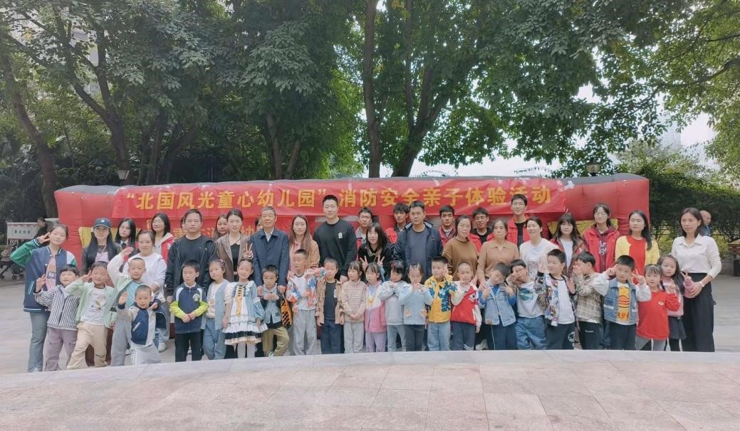 11月9日,在全国消防宣传日到来之际,工商管理学院分团委第四届“爱心桥”青年志愿者服务队带领2022级酒店管理、市场营销和国际商务专业部分同学去到江北区北国风光社区幼儿园,开展了一场意义非凡的安全疏散演练活动,旨在向小朋友们宣传消防安全知识,提升他们的安全意识。