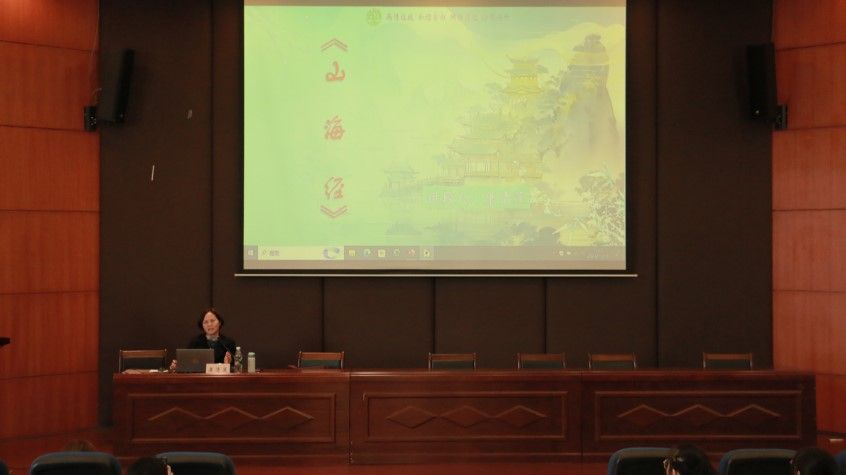 康清莲分别从《山海经》概要、著名神话故事、名山三部分进行讲解,带领同学们徜徉在《山海经》中瑰丽、奇幻的世界,感受我国古代人民对自然环境、地域风土、神话传说的认识和想象。同学们在 “鲧禹治水”“刑天舞干戚”等神话故事中学习他们坚韧不拔、顽强不屈等中华民族之优秀精神;在“青丘”“不周山”“招摇山”等名山大川中领略来自上古文化的奇幻魅力;在齐声朗读陶渊明关于《山海经》的诗歌中,找寻文化的踪迹。讲座过程中,康教授与学生积极互动,同学们踊跃回答老师问题,现场气氛活跃。