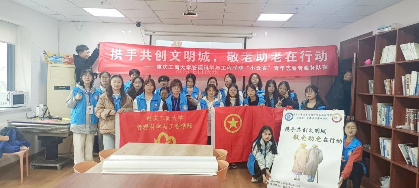 为了弘扬中华民族“尊老敬老”的传统美德,促进和谐社会,我校管理科学与工程学院‘小云雀’青年志愿者服务队于2023年12月2日在重庆市渝中区嘉陵新路5号成功开展以“尊老敬老传承爱,美好未来孝为先”为主题的长期敬老活动。