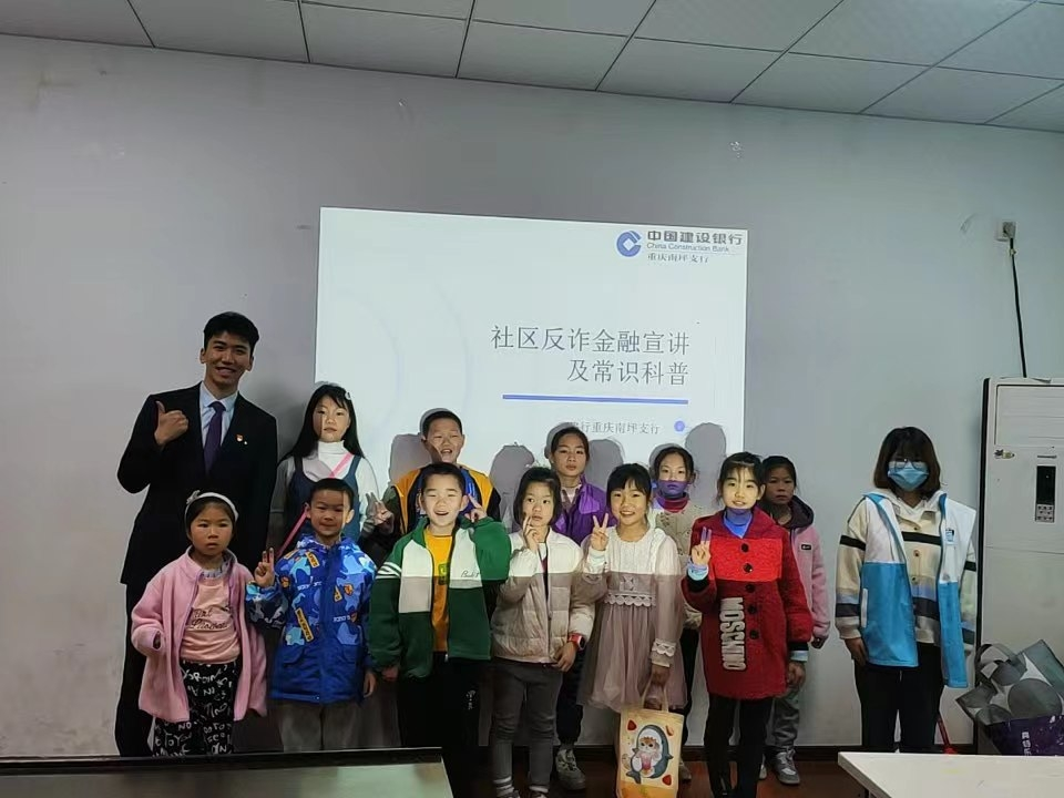3月16日上午,国际商学院青年志愿服务队联合南坪建设银行的本院校友在白马社区微型少年宫,为社区儿童开展题为“金融安全无小事,反诈意识不可缺”金融反诈科普活动。